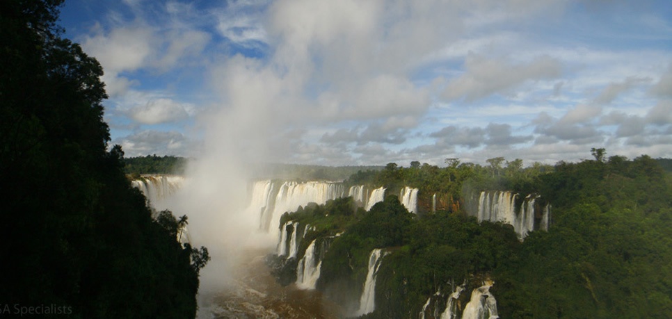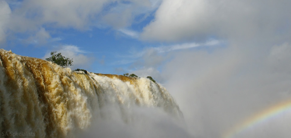 As the river Iguacu crosses the border between Brazil and Argentina it thunders over a series of around 275 separate falls and cataracts that, together, make up one of the most majestic sights in the world, the Iguazu Falls.