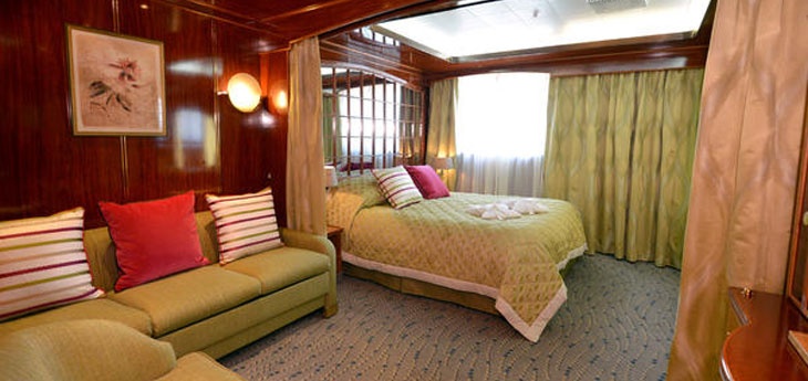 All suites have exterior views, a choice of a queen- or twin- bed, a sitting area with a convertible sofa and side chair, flat screen TV, independent temperature controls, mini-bar and marble-appointed en-suite bathroom. Penthouse and Veranda suites have the additional facility of a private balcony.