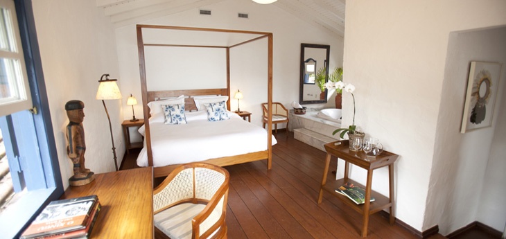 The hotel’s 9 rooms are set within a converted ‘fazenda’ or farmhouse. All have private balconies, equipped with hammocks and boast beautiful views out towards the Pousada’s tranquil gardens, its freshwater swimming pool and the turquoise waters of the bay.