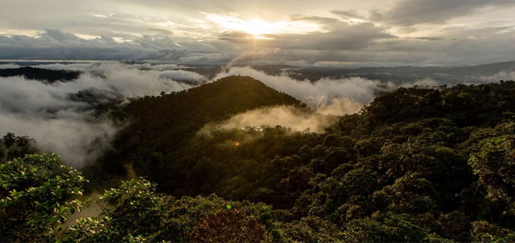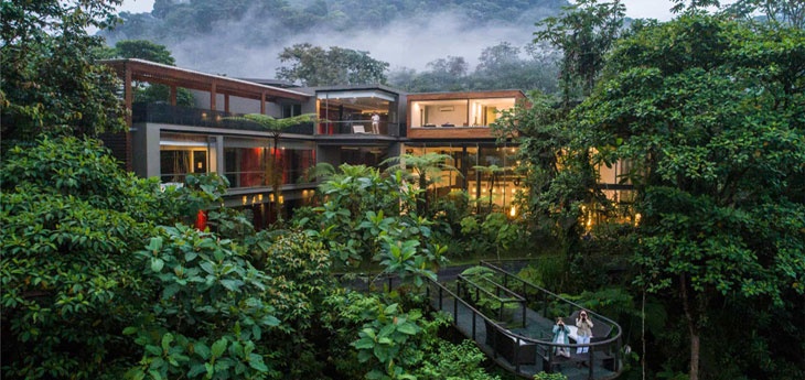 Mashpi lodge is located in a private reserve that spans 10sq. km of Ecuador’s stunning Cloud forest. Set at 950m elevation, the lodge offers astonishing views of its environs – which is 70% primary forest. At times, it genuinely feels as if the lodge is part of the forest. In terms of access, the transfer to and from Quito is around 4 hours by road. To minimize the environmental impact, only the original road that existed for the timber mill is used. Yet the changing scenery from city to forest is part of the experience.