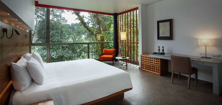 Where to start?! Firstly, it is worth noting that guests stay on a full-board basis, that includes access to most of the activities led by their naturalists guides. In addition to the trails, there is an 85-ft observation tower, an educational Life Center, the incredible Sky Bike (effectively a tandem hanging 655ft up in the canopy!) and Dragonfly – a gondola that traverses over 2km through the forest. Back at the lodge, there is a Wellness Center that offers a spa, hot-tub and outdoor yoga deck. The lodge also has an observation deck, common area, library, restaurant and bar.